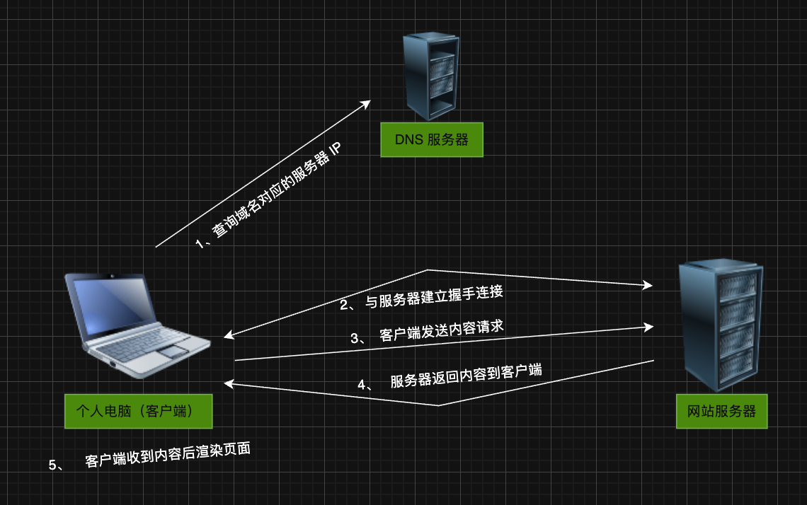 - 寻找服务器的 IP 地址:你的客户端浏览器通过本地配置的 DNS 服务器来找到网站的服务器 IP 地址。